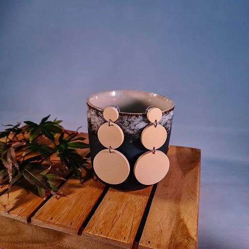 Drie zachte cirkels in warme beige tint — een spel van eenvoud en elegantie dat elke outfit een verfijnde toets geeft.