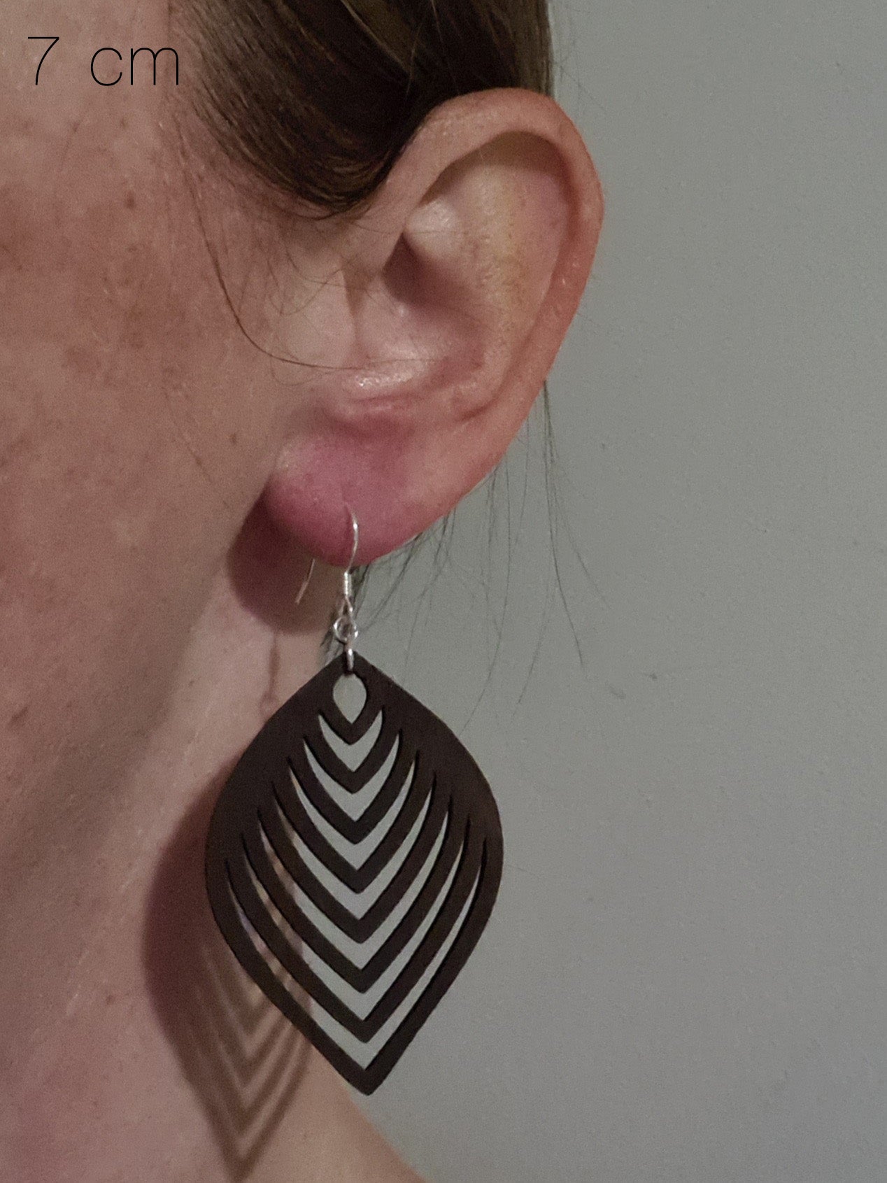 Deze houten oorbellen in abstracte bladvorm combineren organische elegantie met een eigentijds ontwerp. Hun vloeiende lijnen en natuurlijke houtstructuur geven een zachte, artistieke uitstraling die bij elke stijl past.