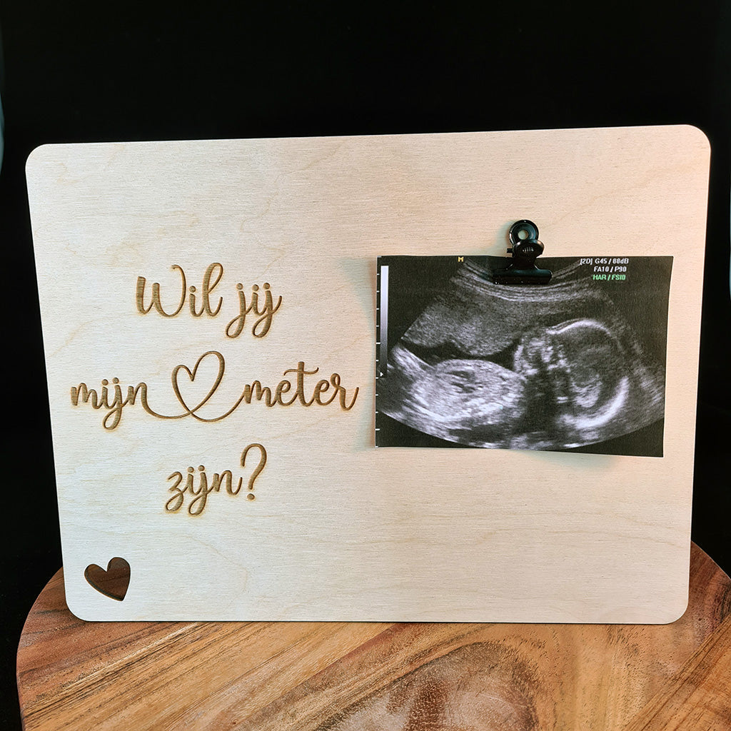 Leuk houten bord om iemand als meter te vragen, waar je je eigen foto aan vast kan hangen.