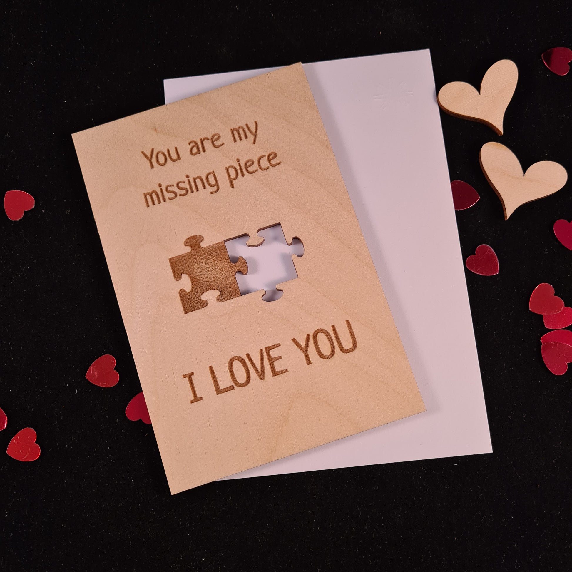 Met deze houten wenskaart laat je je geliefde weten dat hij/zij/hen je volledig maakt ♥
