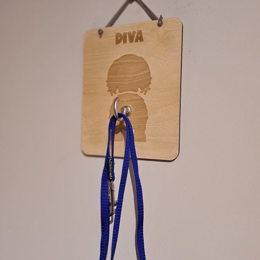 Deze kapstok voor de leiband van je hond kan je volledig personaliseren door het juiste ras te kiezen en de naam toe te voegen. Je hebt keuze uit 17 verschillende hondenrassen.