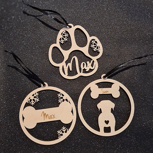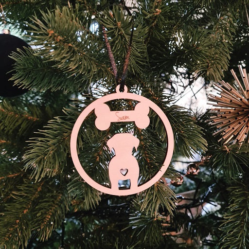 Unieke kerstversiering met zelfgekozen naam voor de honden die ook een plaatsje in de kerstboom verdienen. Per stuk verkrijgbaar.