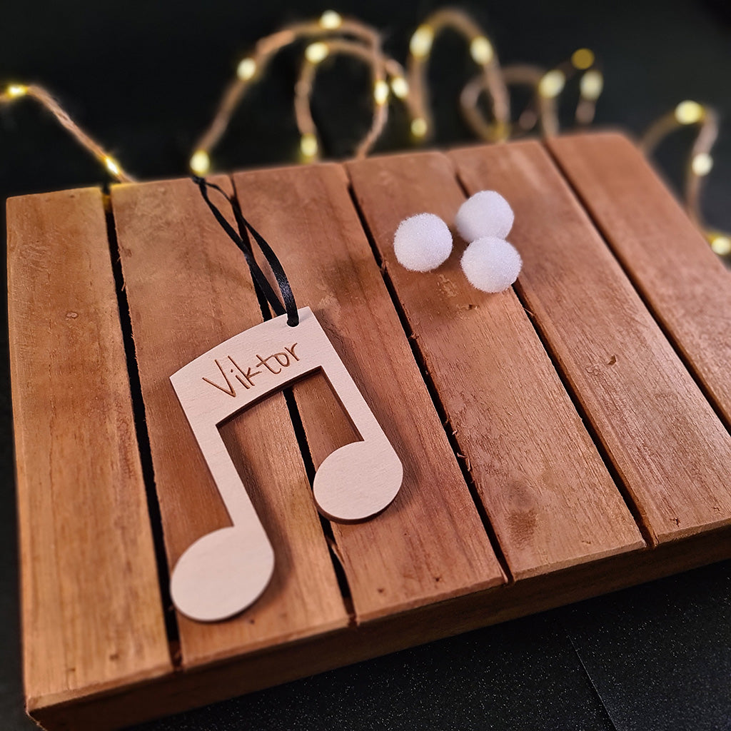 Een melodie van warmte en licht — deze houten muzieknoot met naam brengt een vleugje harmonie in de kerstboom. Persoonlijk, zacht en feestelijk.