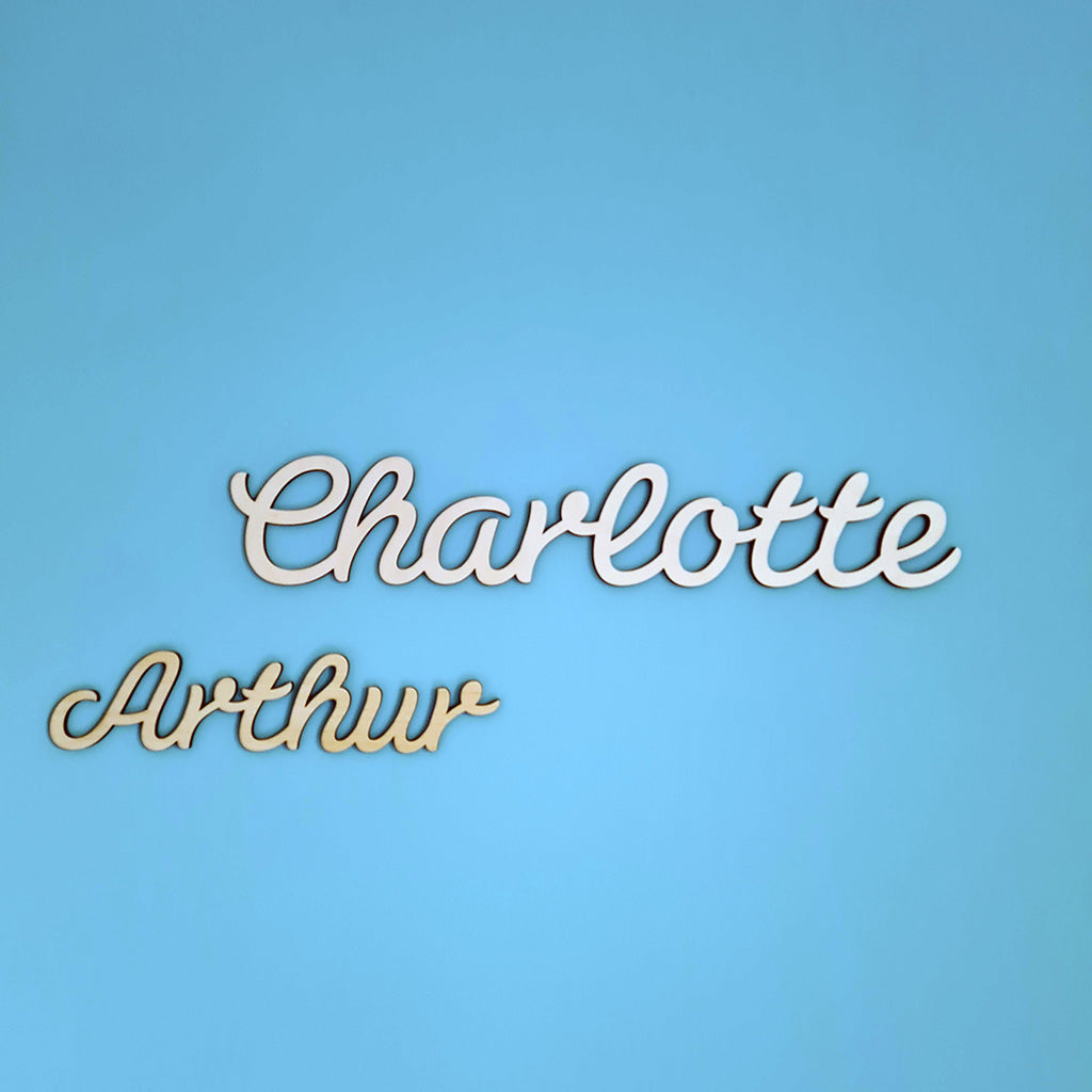 Gepersonaliseerde houten naam als decoratie, om op te hangen in de kinderkamer, op de deur, ...