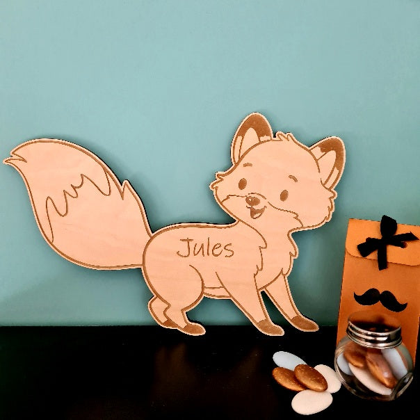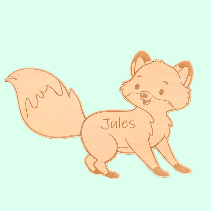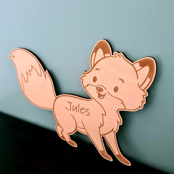 Een lief vosje met een warme glimlach — zacht gegraveerd met de naam van je kindje. Een teder accent dat elke kinderkamer persoonlijk maakt.