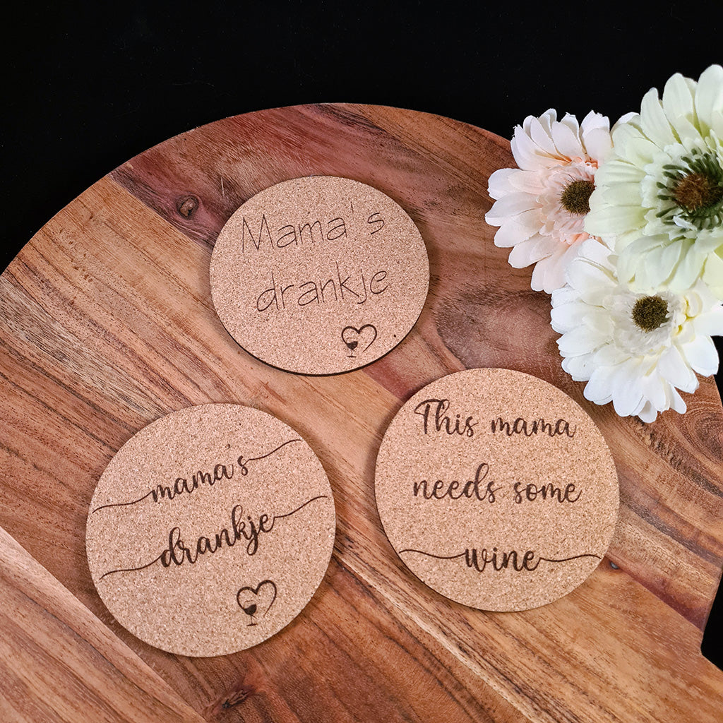 Kurken onderzetter om je moeder te verrassen, voor haar verjaardag, moederdag, of zomaar.