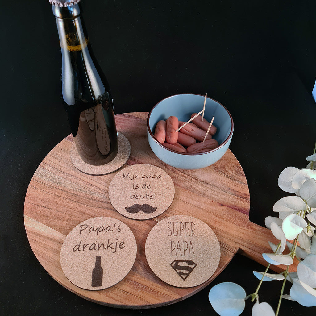 Kurken onderzetter om je vader te verrassen, voor zijn verjaardag, vaderdag, of zomaar.