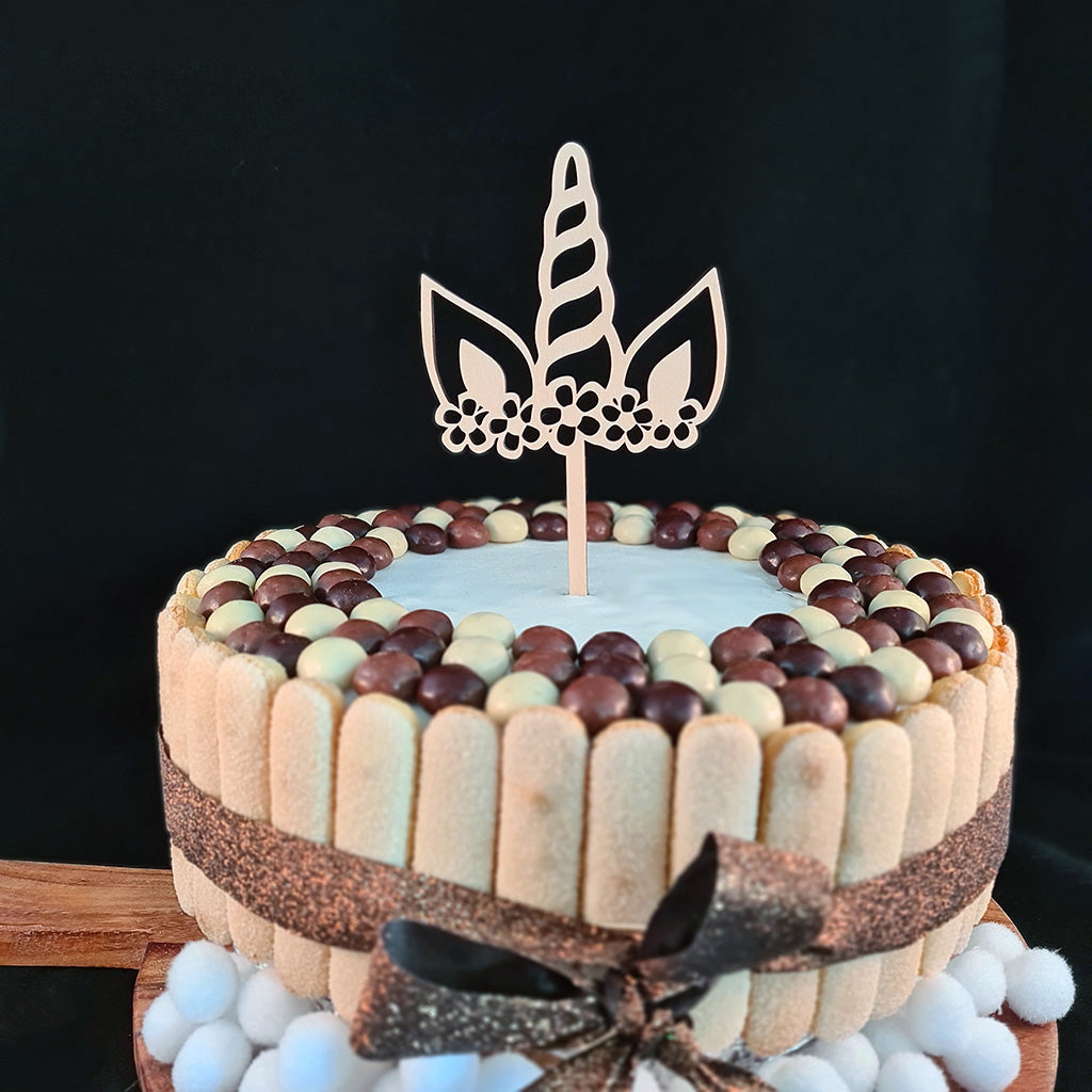 Een vleugje magie voor elk feestje — deze sierlijke houten unicorn-topper laat elke taart stralen met fantasie en zachtheid.